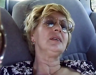 Mature Pauline fingers her old labia in a truck and gets penetrated