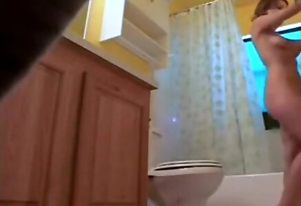 After she takes a bathroom chubbuy chick masturbates in the shower