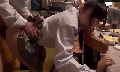 Japanese cougar hoe gives her cunt to her husband's coworker at dinner time!