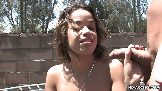 wspaniały ciemnowłosy nastolatek z długimi włosami dostaje jej cooter lizał, a następnie nadziewane gonzo gigantyczny wąż