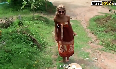 Professional Thai prostitute Tiffany swallows beefstick in the public park