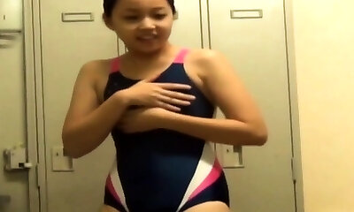 Slender Chinese Girl Changed into a Tight Swimsuit
