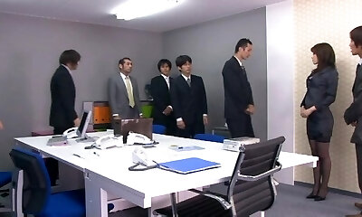 Gorgeous Japanese diva yelling while her pussy is gangbanged hardcore in office