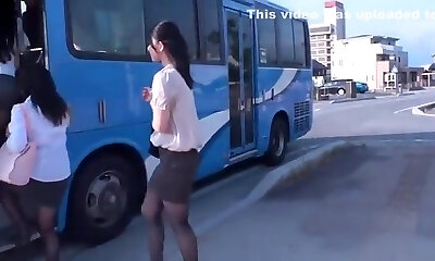 Chinese in Black Pantyhose Fucked in a Public Bus